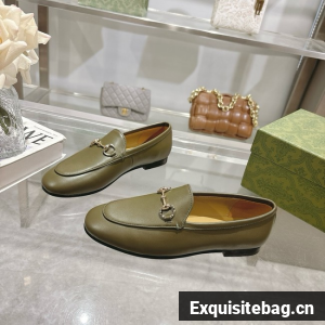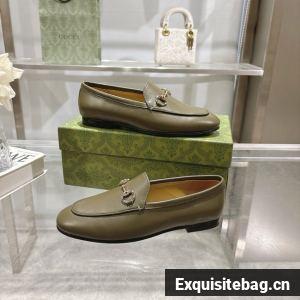 The loafer with Horsebit, representative of Gucci heritage, speaks of classic elegance. This model is crafted in dark green leather and is defined by the iconic Horsebit.