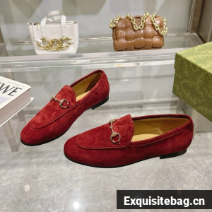 The Gucci Jordaan is an evolution of the classic loafer with Horsebit. The pair of shoes highlights the emblematic gold-tone equestrian hardware through a slimmer silhouette. Here, the style is presented suede.