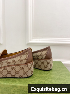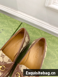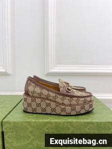 The Original GG canvas lends itself to these elevated loafer with Horsebits. The beige and ebony motif is accentuated by a light gold-toned hardware. The wedge detail adds a bold and special touch to this iconic style.