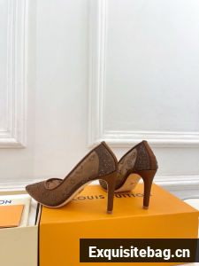 The Gala pump is an elegant, evening-ready style in mesh embroidered with sparkling rhinestones, which form the iconic Monogram pattern. The sleek lines of the upper are complemented by a slender stiletto heel, while the fine leather outsole is embellished with an LV Initials.