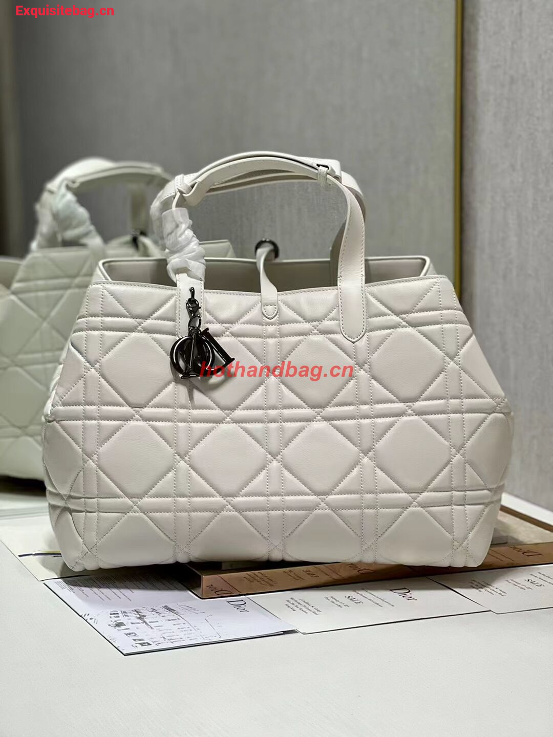 LADY DIOR TOP HANDLE LARGE BAG Latte Cannage Lambskin C0088 WHITE&BLACK