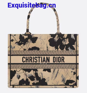Medium Dior Book Tote Beige and Black Fleurs Mystiques Embroidery M1296ZE