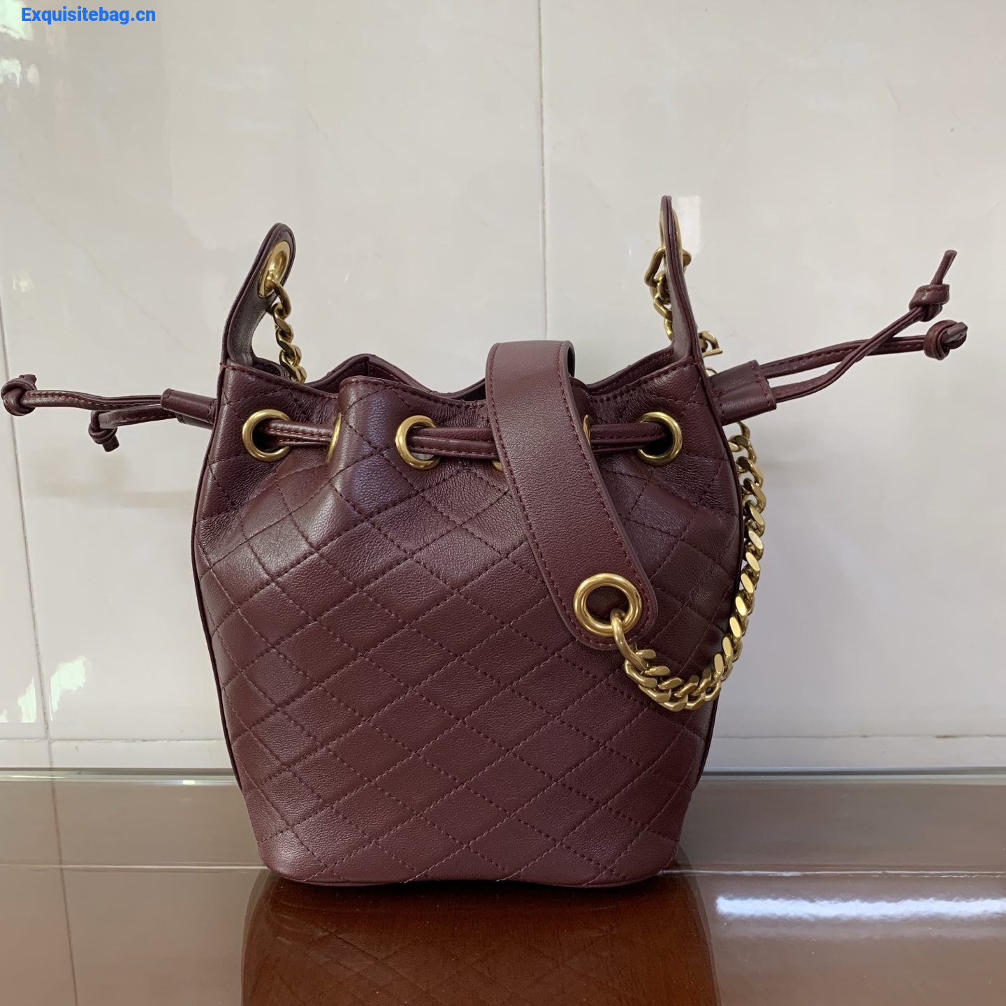 Saint Laurent Cassandra Mini leather bucket bag Burgundy