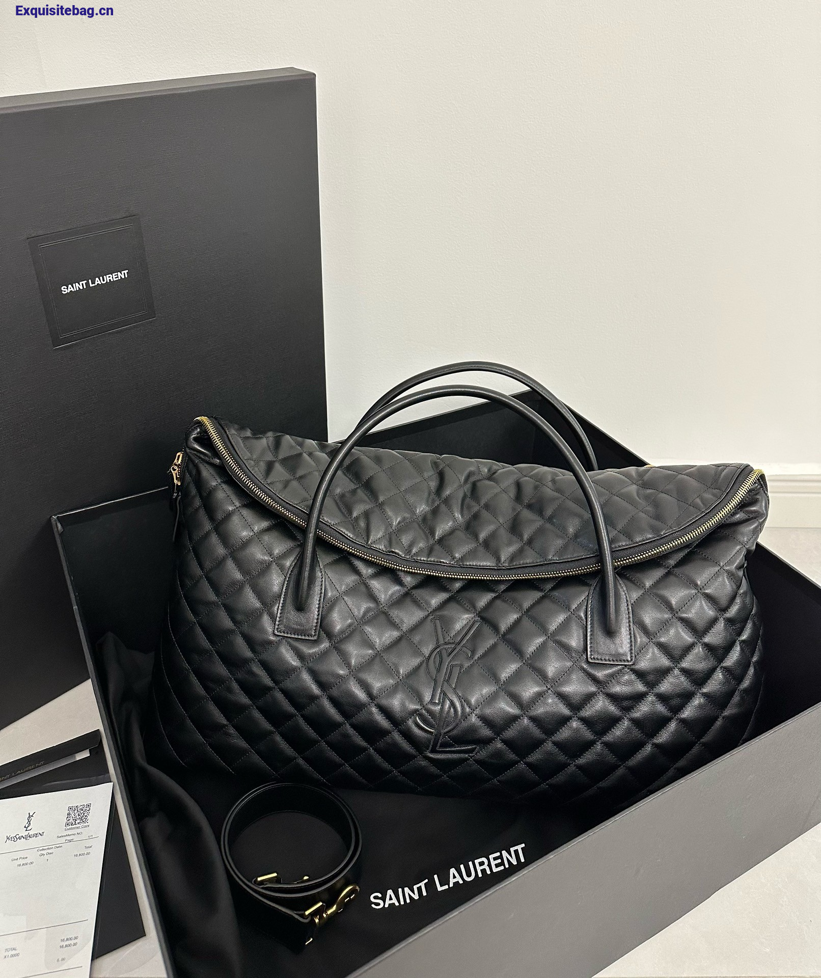 Saint Laurent Es Giant Travel Bag In Black Quilted Leather