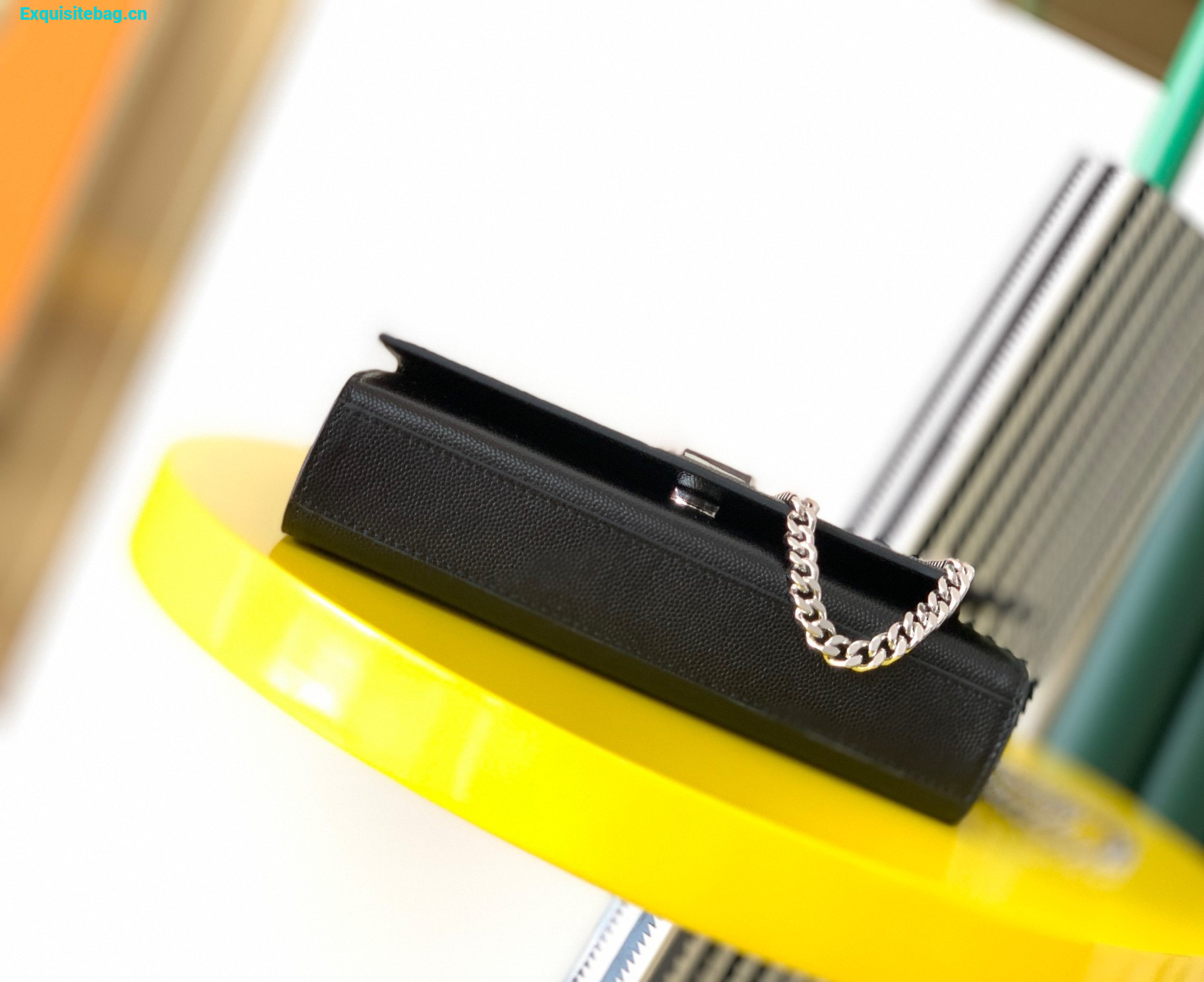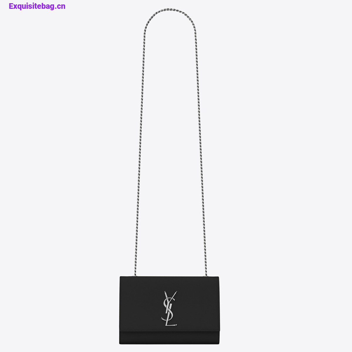 Saint Laurent Kate Chain Small Bag In Noir Grained Leather
