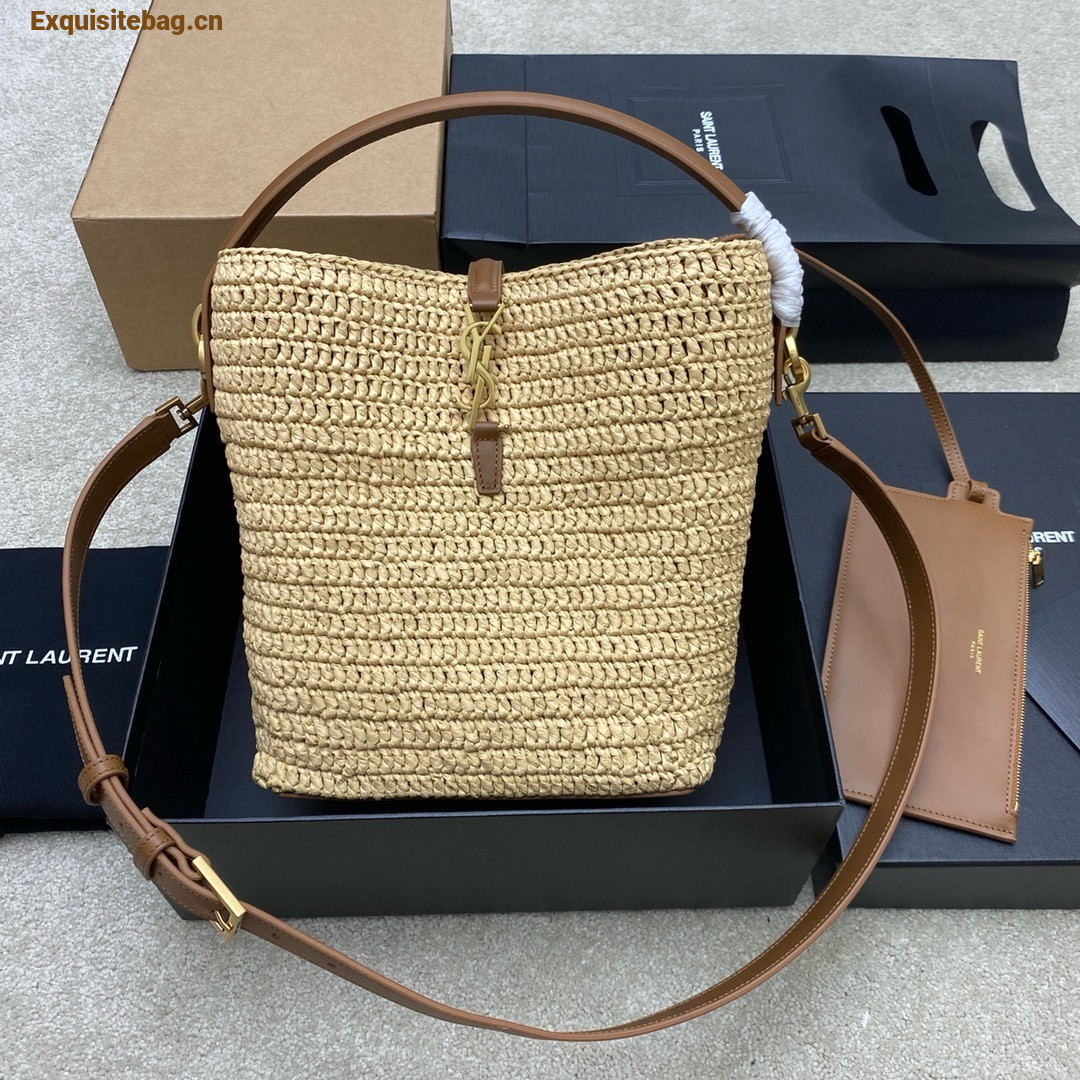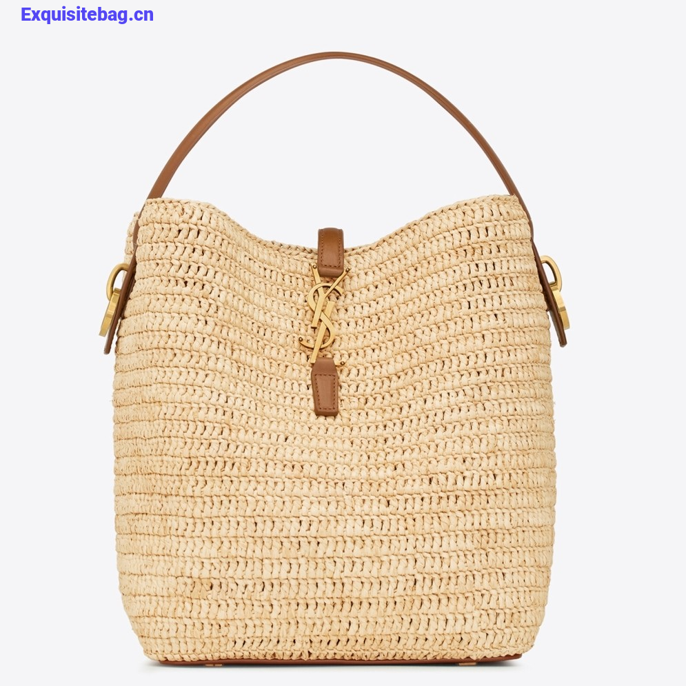 Saint Laurent Le 37 Bucket Bag in Natural Woven Raffia