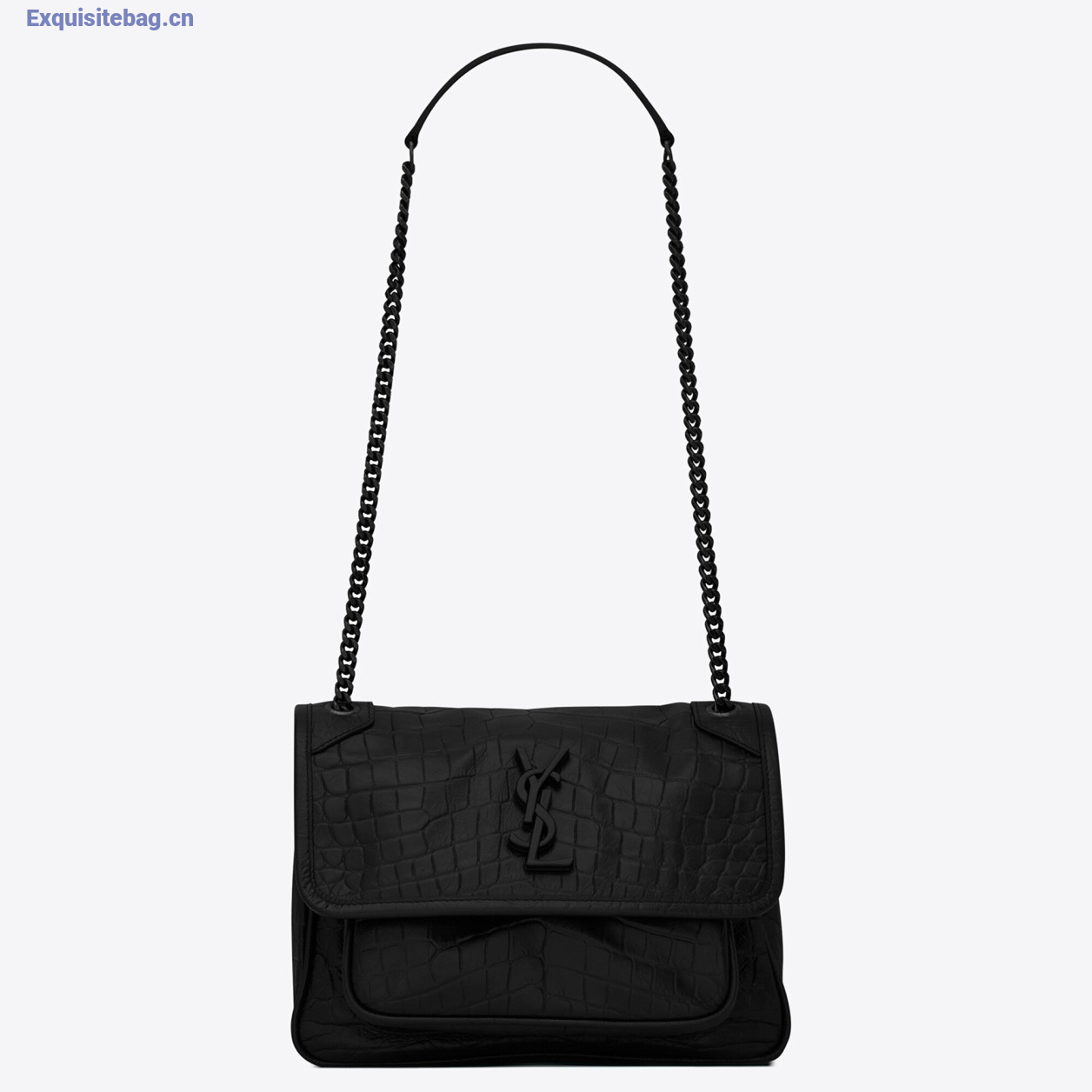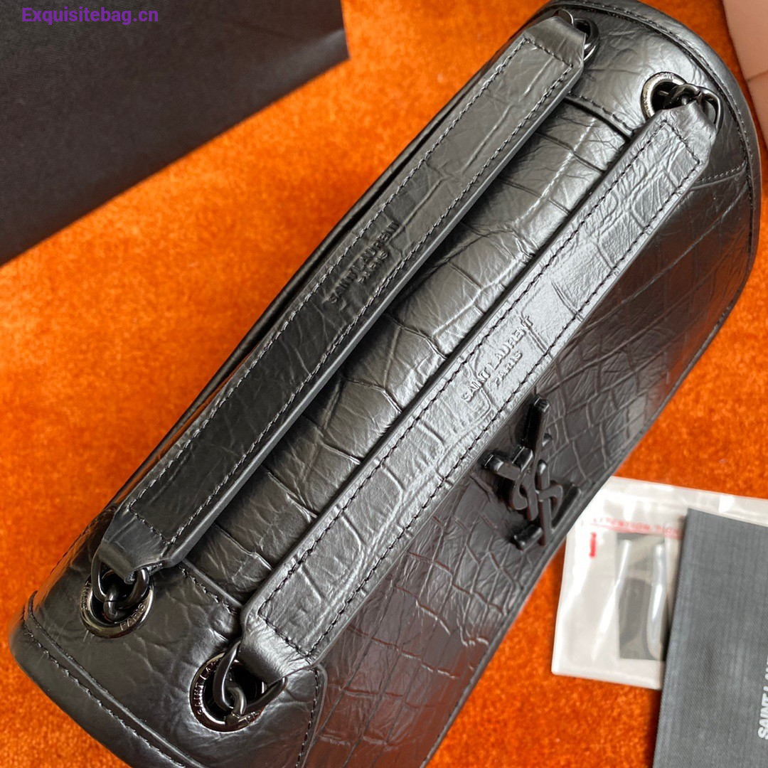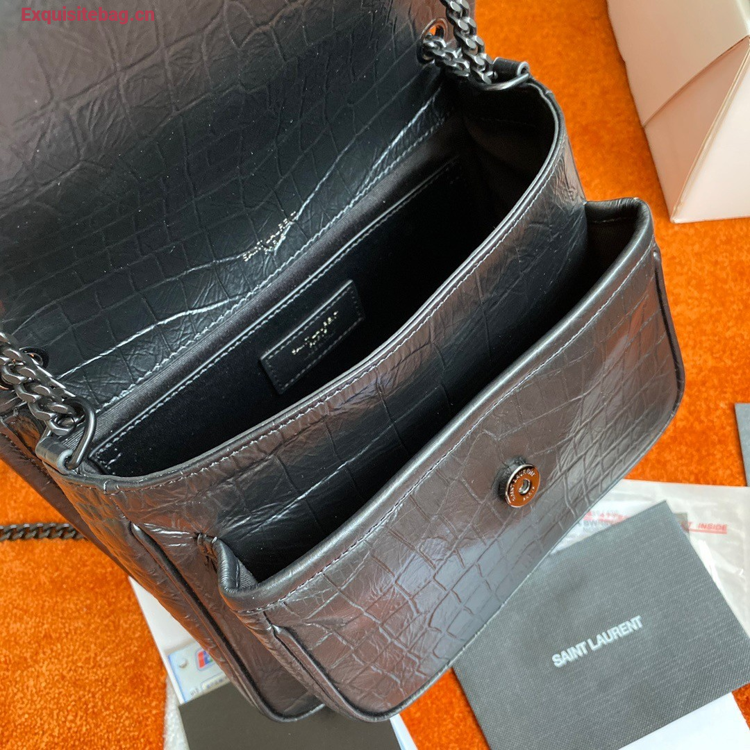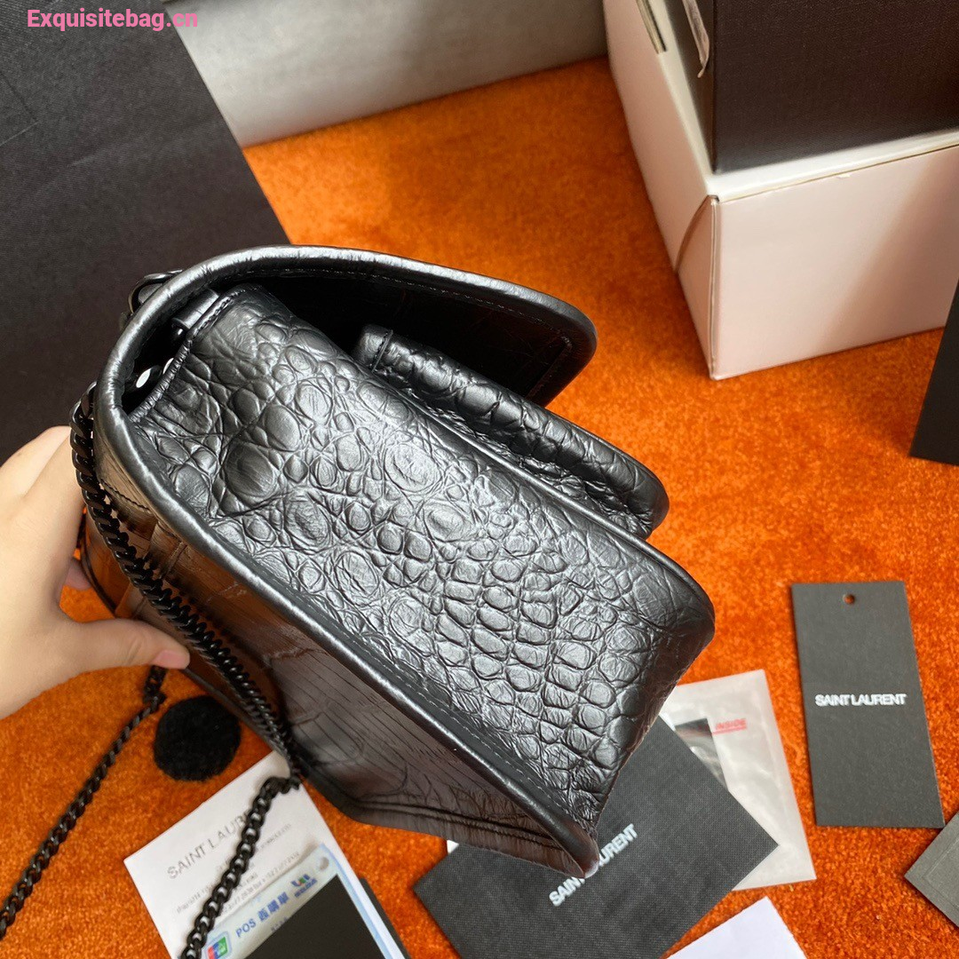 Saint Laurent Niki Baby Chain So Black Bag In Crocodile embossed Leather
