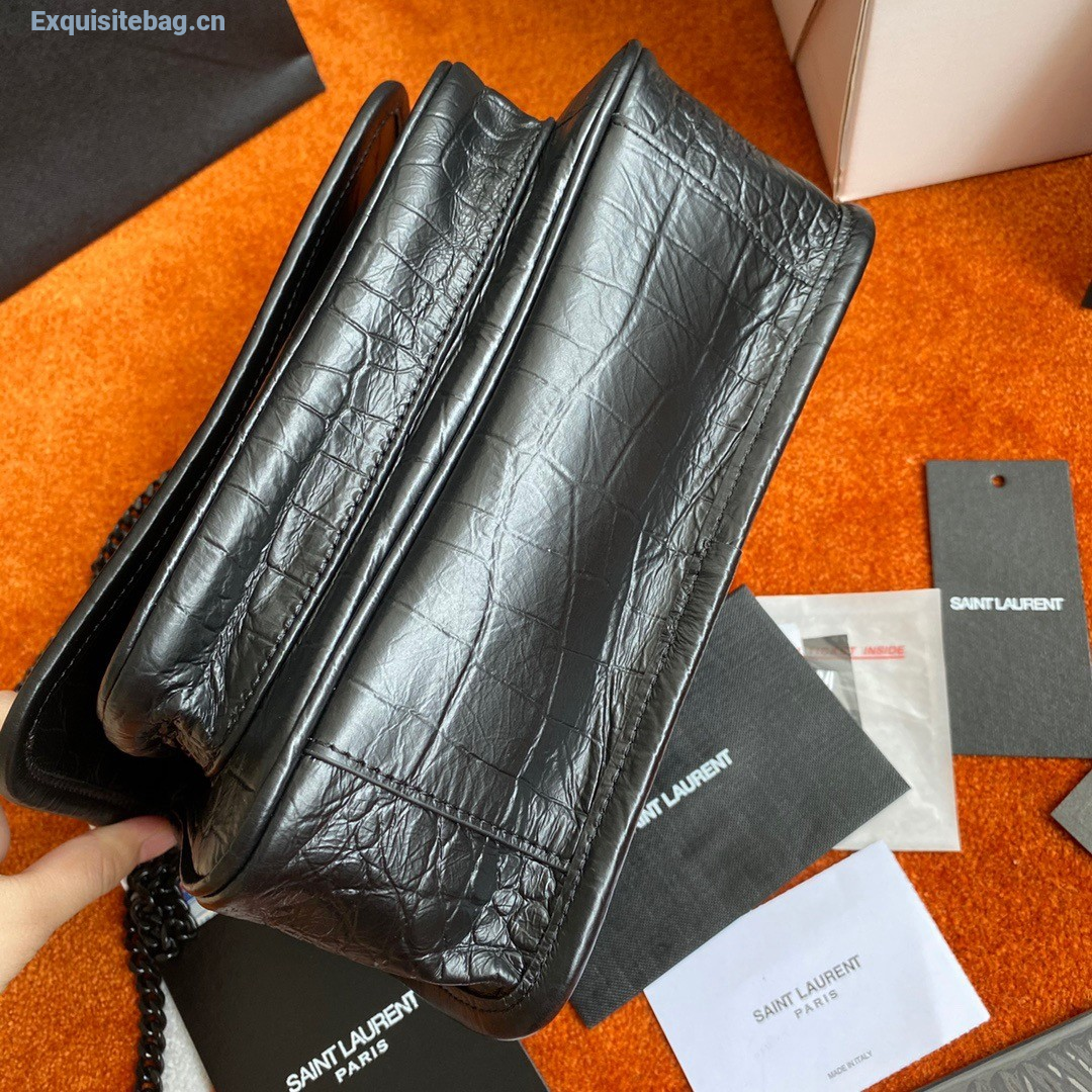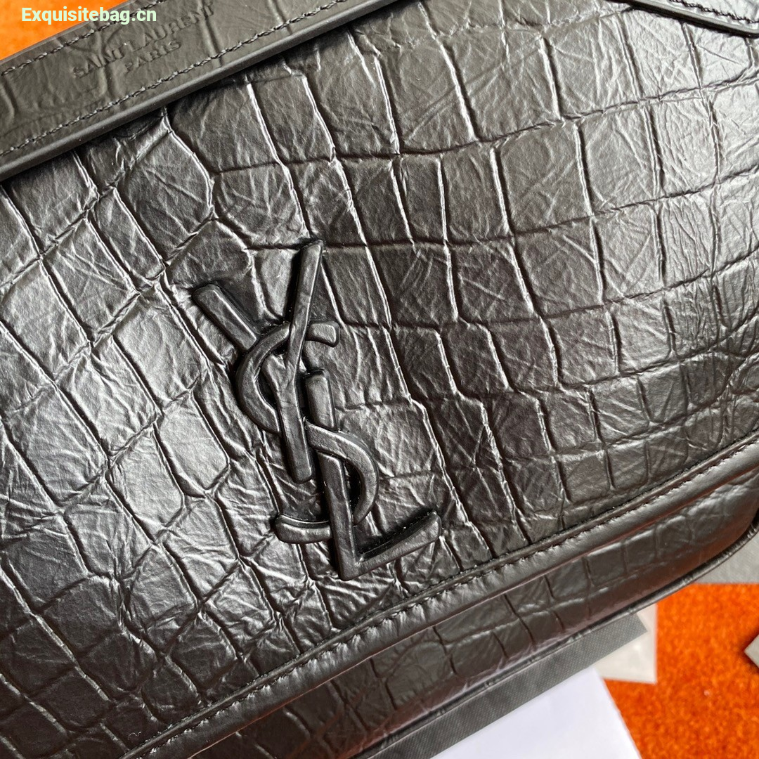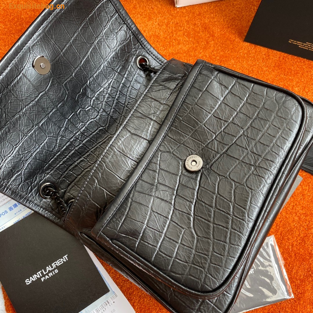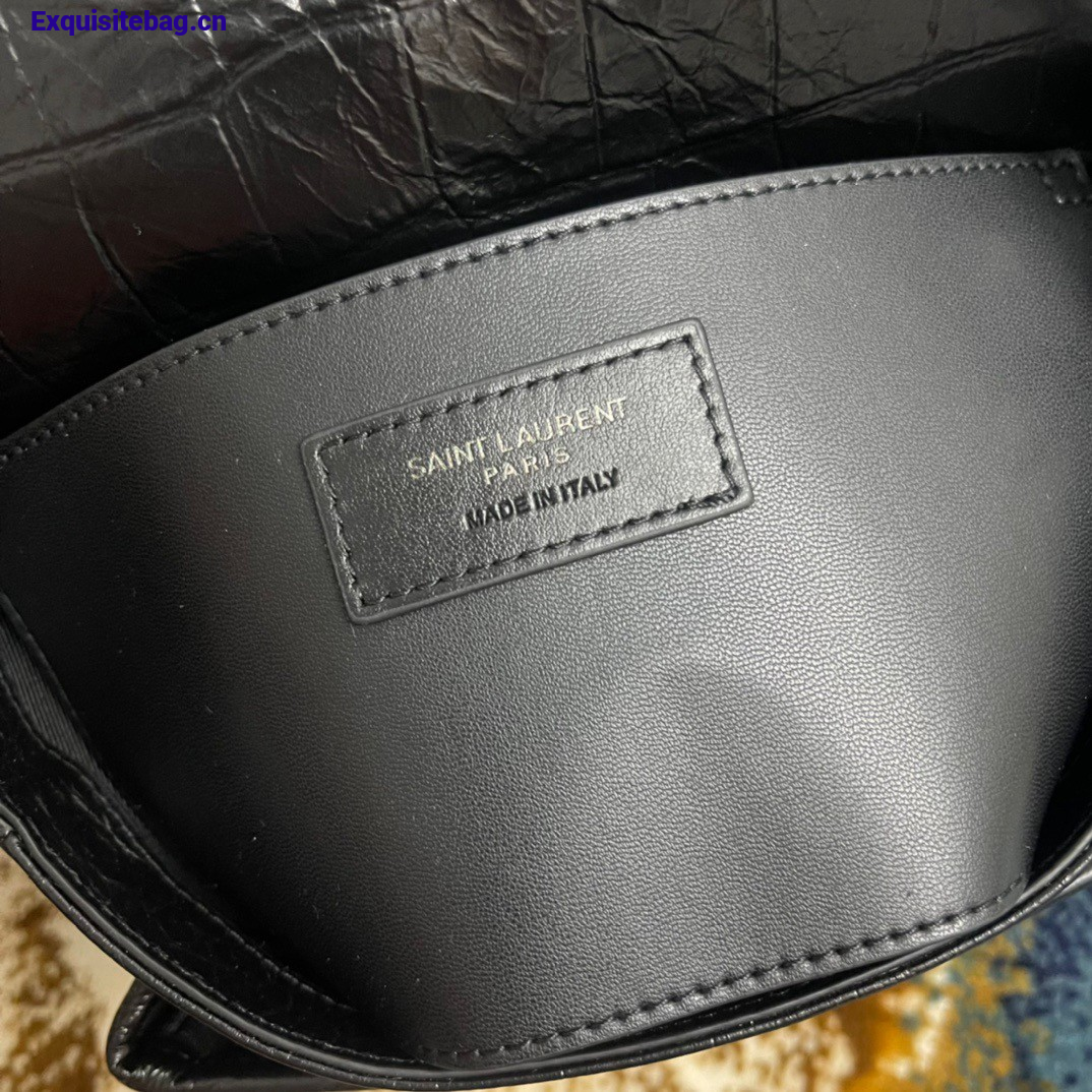 Saint Laurent Niki Baby Chain So Black Bag In Crocodile embossed Leather