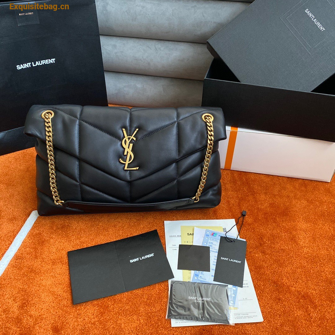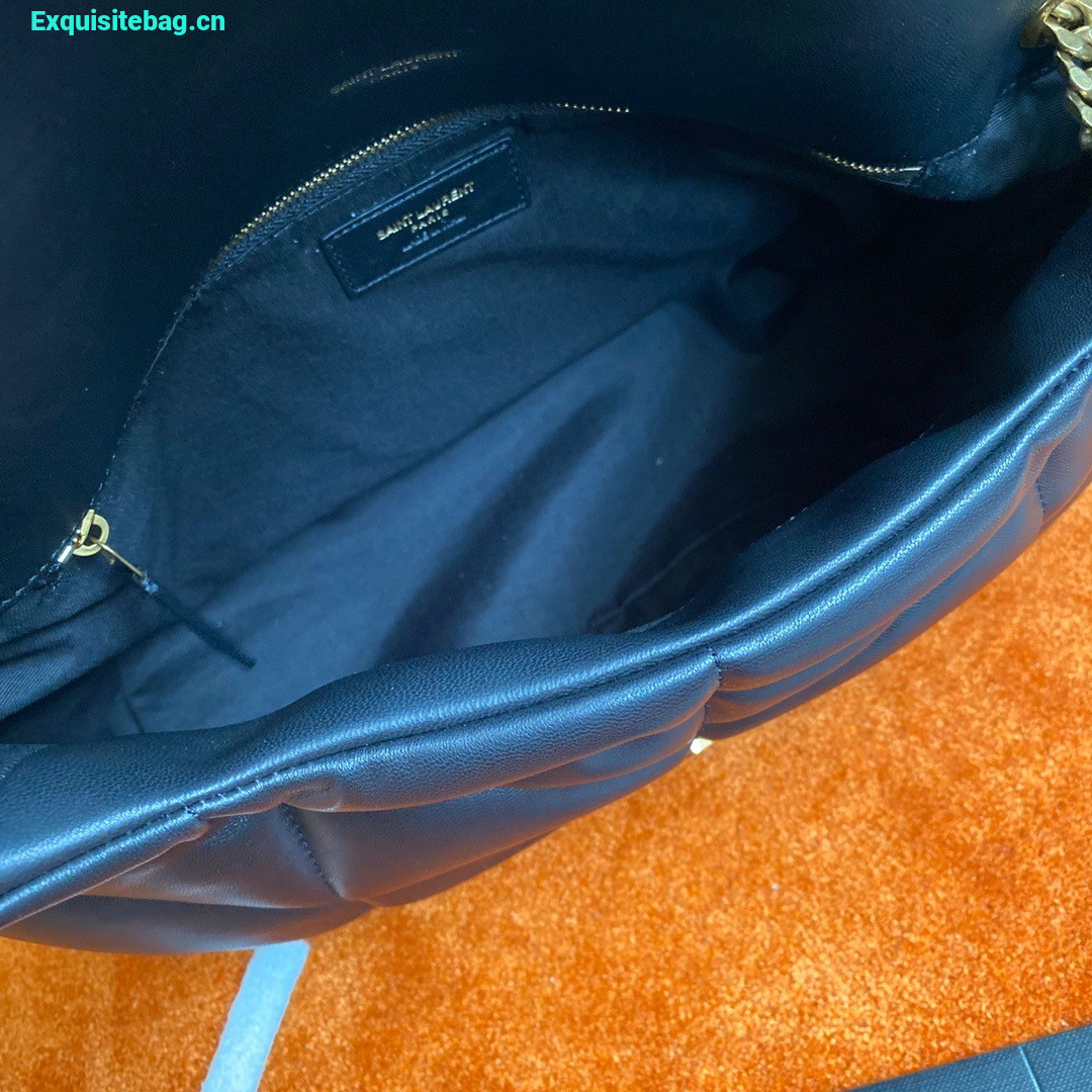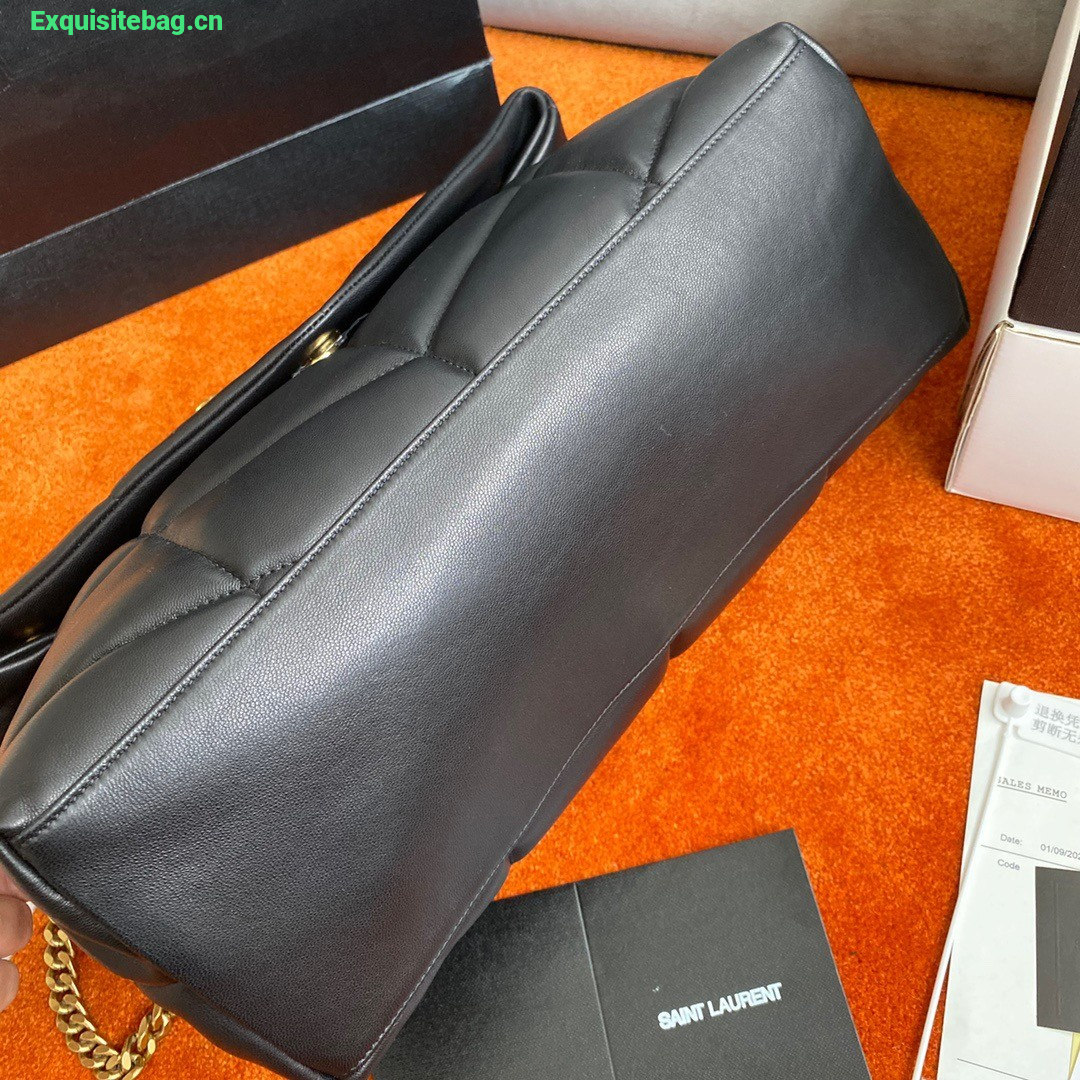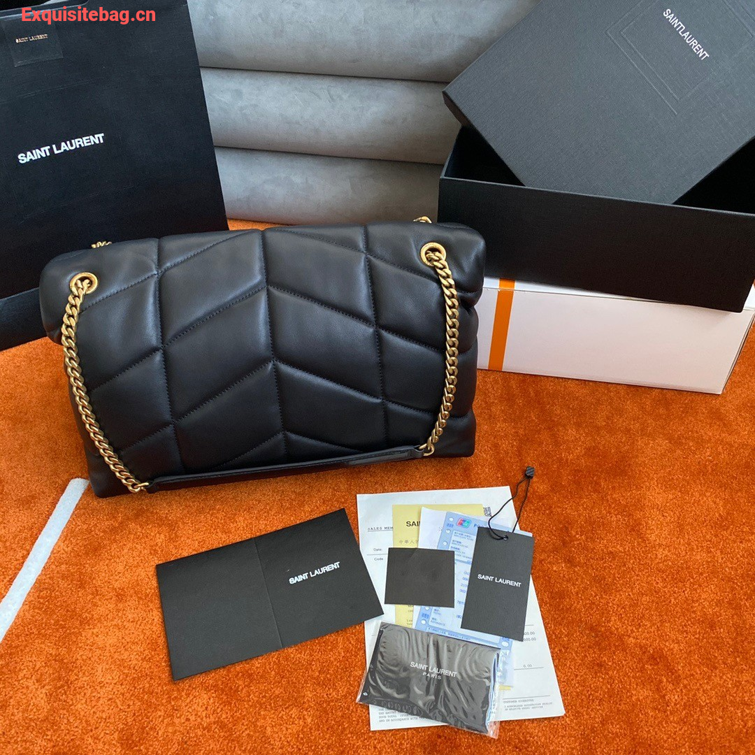 Saint Laurent Puffer Medium Chain Bag In Black Lambskin