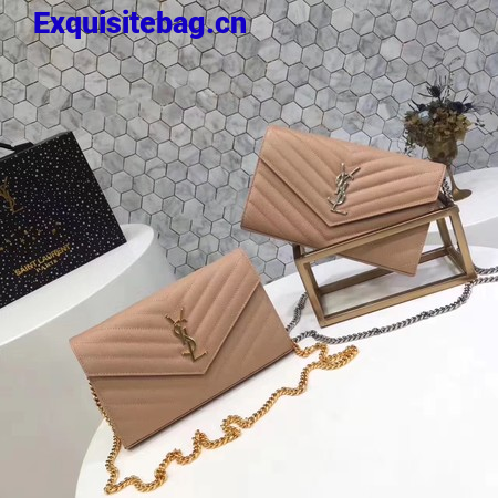 YSL WOC Classic Monogramme Flap Bag Cannage Pattern Y1003 Apricot
